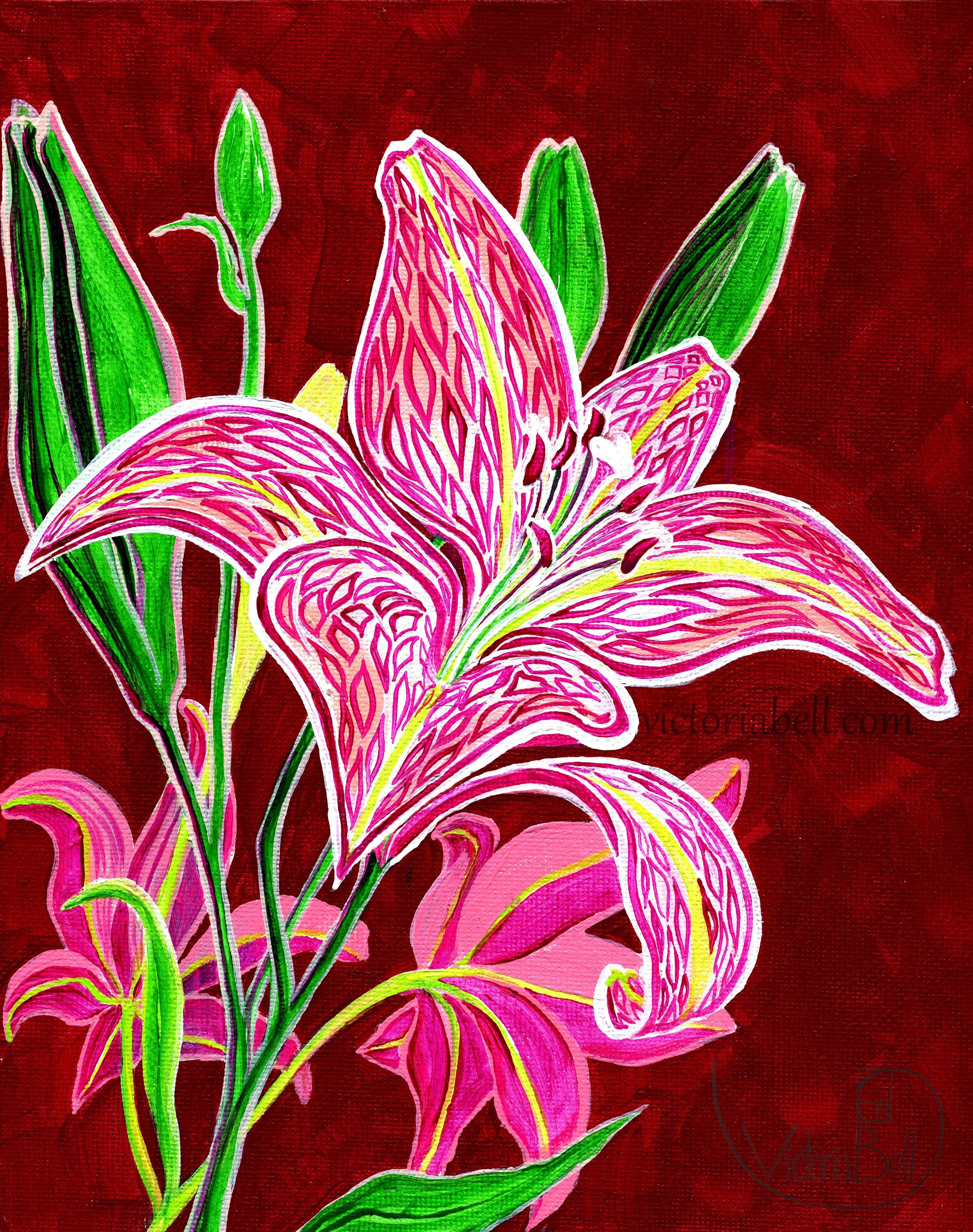 Pink Lily on Red